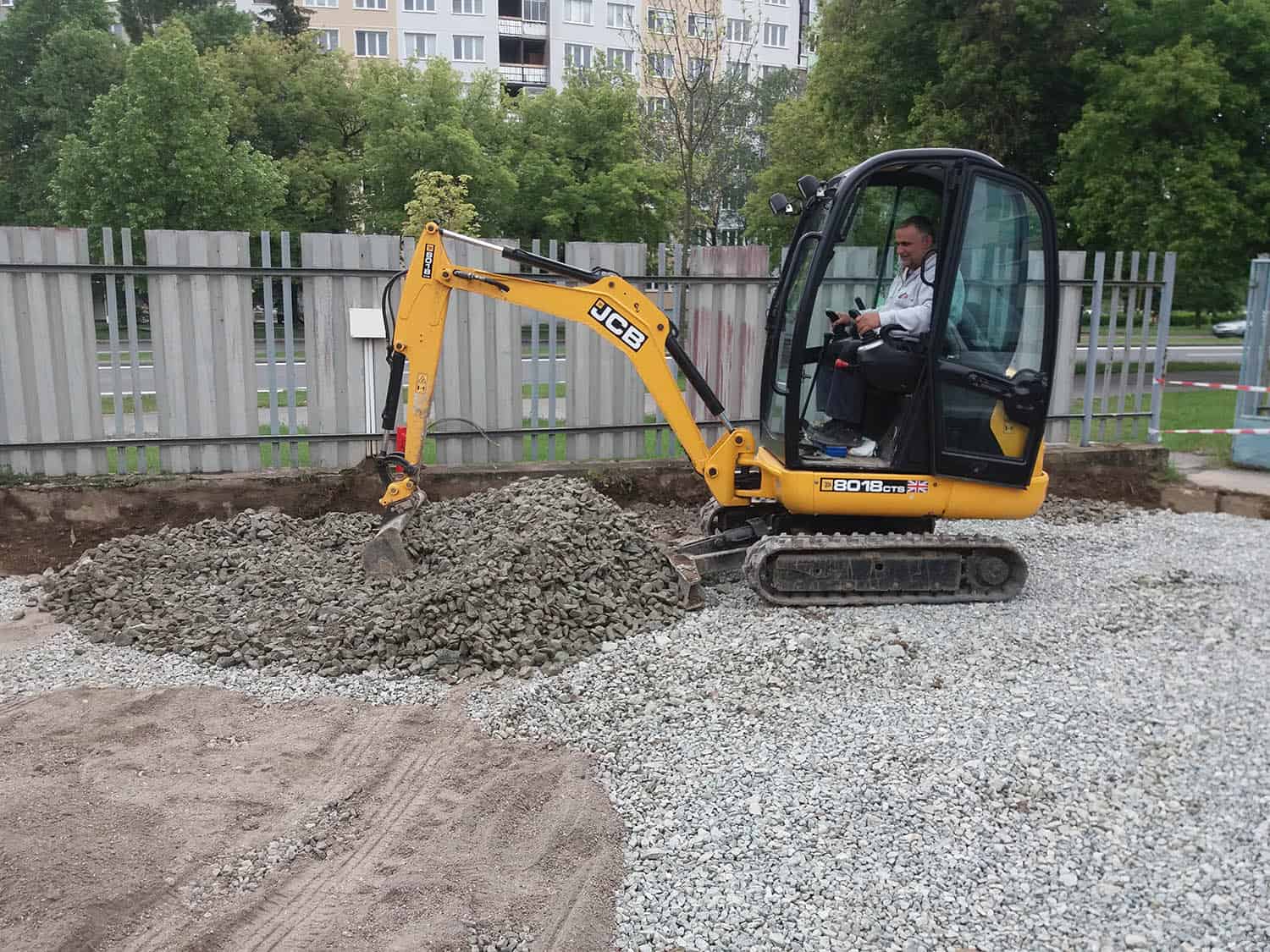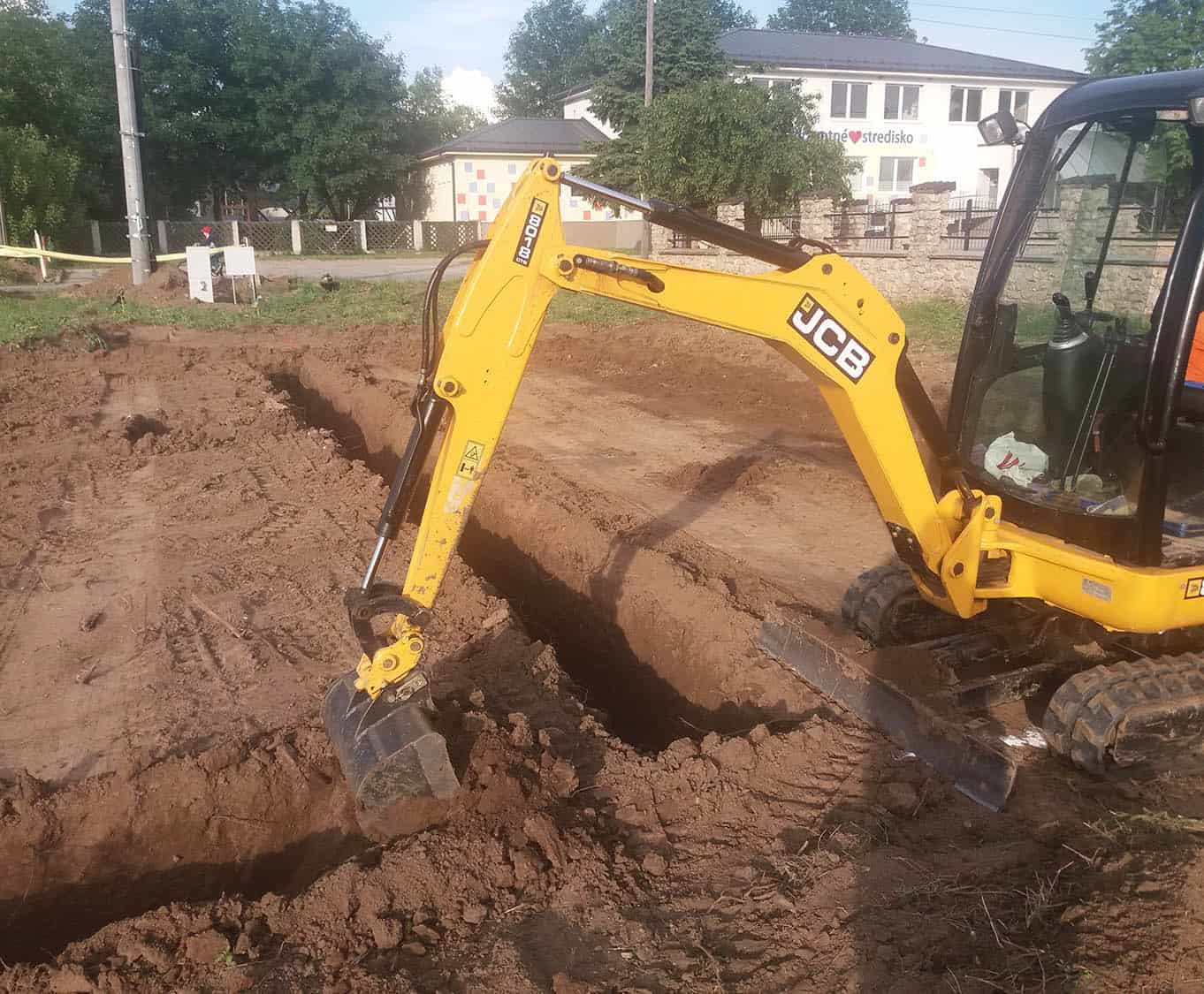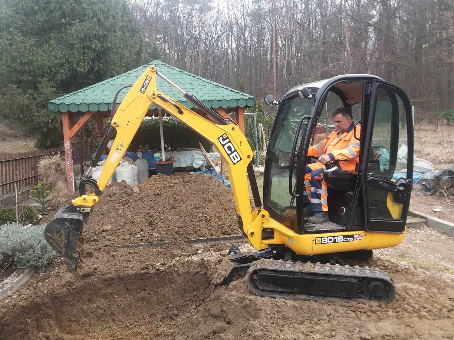 Toho času pracujem ako živnostník a ponúkam zemné práce pásovým mini bagrom JCB. Pásový mini báger je vhodný na pozemky, kde nie je možný prístup väčšej stavebnej techniky. Na zarovnávanie a úpravu terénu a na hĺbenie rýh do hĺbky max 2 metrov pre vodovodné, kanalizačné, plynové, telekomunikačné a elektrické prípojky. Minibager je vhodný pri výkopových prácach na zakladanie bazénov rodinného typu.