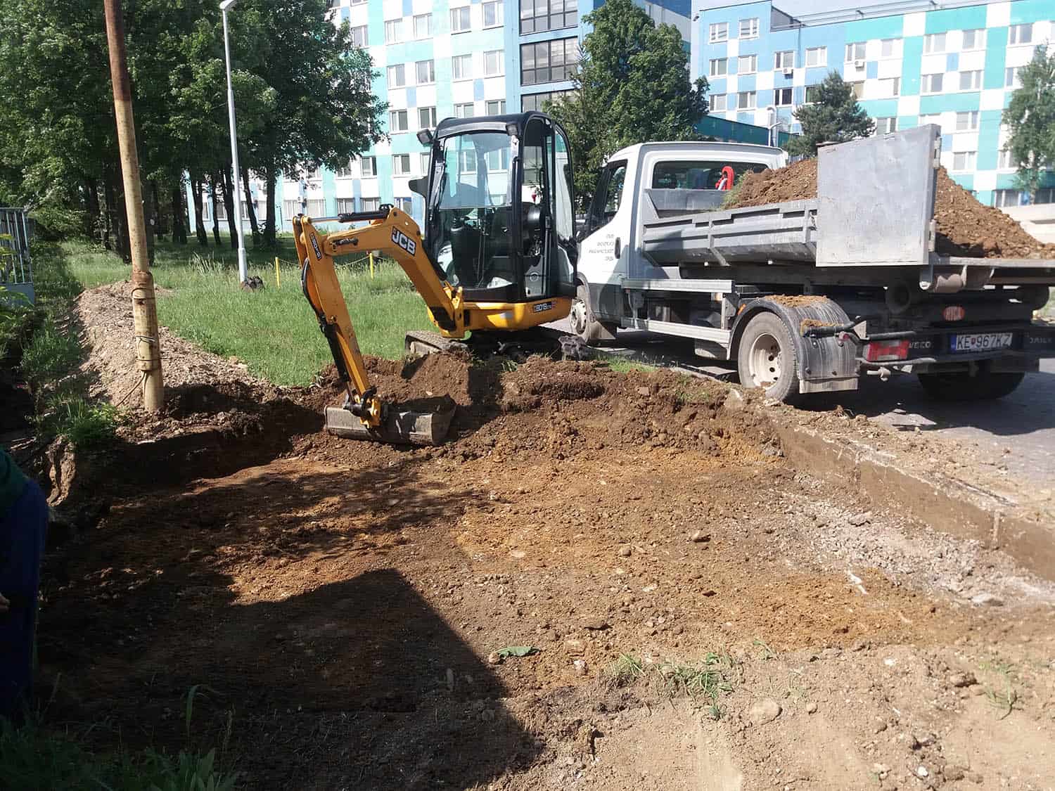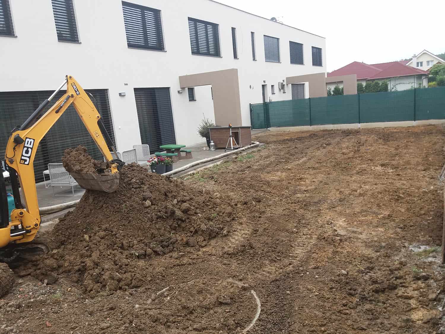 - zemné práce pri výstavbe obchodného domu Decathlon – odhŕňanie skrývky, zarovnávanie a úprava terénu, kopanie rýh pre pilóty výkopové